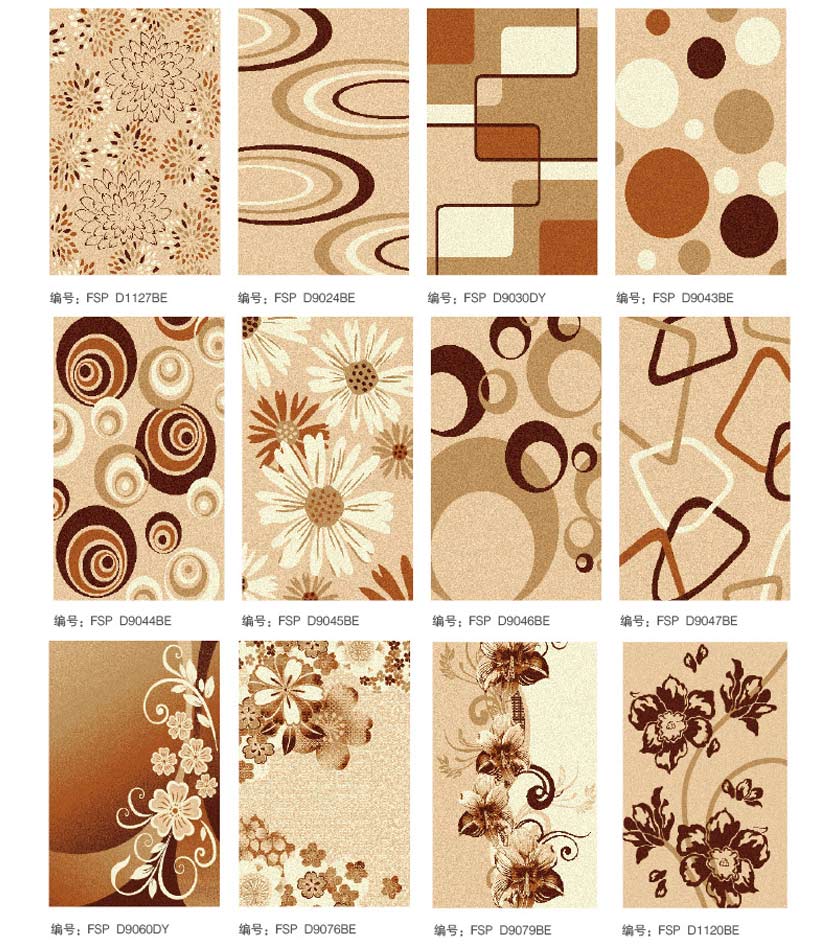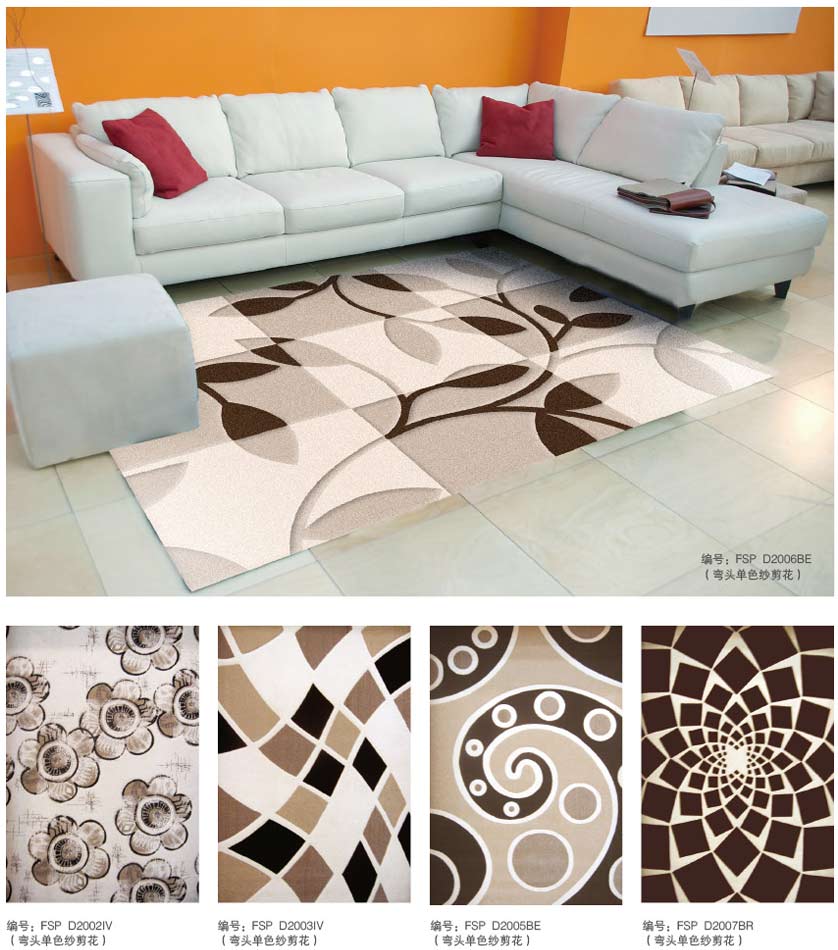 威尔顿地毯具有天鹅绒般的毯面效果,色彩和谐,温馨典雅。具有良好的绒头牢度、外观保持力、清晰的图案装饰能力。一般适宜制作家用块毯和酒店、公寓之客房毯。
