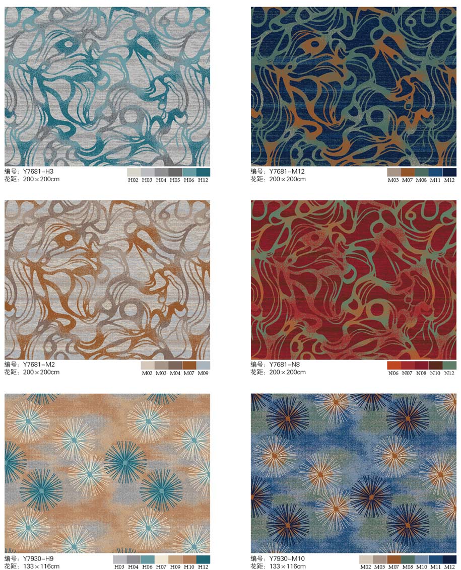 印花地毯以尼龙为原料,具备地毯弹性好、色牢度高、防霉、防虫蛀等特点。适用于各大酒店会议厅、餐厅、咖啡厅等公共区域,并可用于客房、办公室等场所。