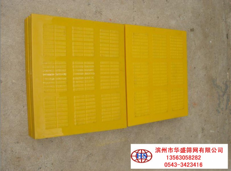 、适用范围广,专业适用性更强,适用任何型号的振动筛机并可量机制作。聚氨酯筛网专业应用于水电站、建材及其它金属选矿业。0.1mm—170mm范围内各种物料的筛分,无论干筛、湿筛都毫不影响筛分效率。对0.5m—3mm范围内的脱水、脱介筛、更加充分地显示了聚氨酯筛面的优越性。产品耐水、耐腐蚀、耐老化,更换维护方便。聚氨酯密度小( 1.32kg/ m 3 ,重量轻于金属筛面,能降低生产单耗,因此能适应筛机大型化发展要求。