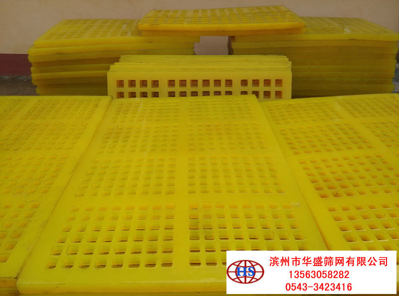 2、适用范围广,专业适用性更强,适用任何型号的振动筛机并可量机制作。聚氨酯筛网专业应用于水电站、建材及其它金属选矿业。0.1mm—170mm范围内各种物料的筛分,无论干筛、湿筛都毫不影响筛分效率。对0.5m—3mm范围内的脱水、脱介筛、更加充分地显示了聚氨酯筛面的优越性。产品耐水、耐腐蚀、耐老化,更换维护方便。聚氨酯密度小( 1.32kg/ m 3 ),重量轻于金属筛面,能降低生产单耗,因此能适应筛机大型化发展要求。
