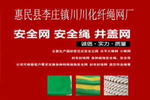 惠民县李庄镇川川化纤绳网厂是安全网、安全绳、井盖网、遮阳网、滑雪场地围网等产品专业生产加工的公司,拥有完整、科学的质量管理体系。惠民县李庄镇川川化纤绳网厂的诚信、实力和产品质量获得业界的认可。欢迎各界朋友莅临参观、指导和业务洽谈。