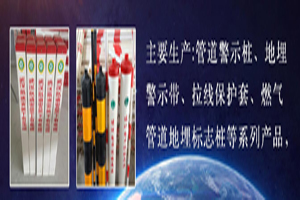 公司主要生产管道警示桩(电流警示桩、燃气警示桩、地埋警示桩)、地埋警示带(可探测型、普通型)、拉线保护套、燃气管道地埋标志桩(塑钢标志桩、玻璃钢标志桩)等系列产品,150余个品种,可根据用户特殊要求设计产品。
