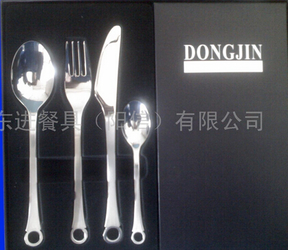 本公司经营不锈钢餐具,刀叉勺,质量保证,欢迎咨询洽谈。 精品礼盒套件:27.5cm*26*3.5cm 有勺2把,刀1把,叉4把。 产品型号:16件套 品牌:东进 产地:山东 产品报价:140 产地:山东 颜色:镜光 材质:进口304.420不锈钢 规格:16件