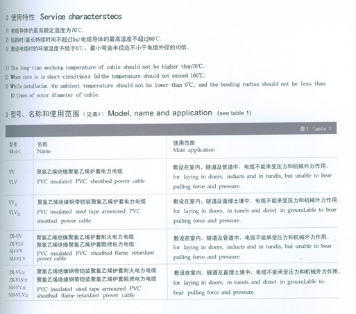 聚氯乙烯绝缘护套电力电缆的使用