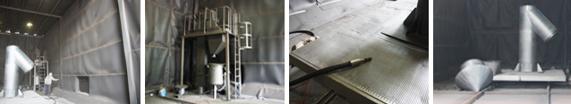 地坑回砂装置,依据回砂能力要求在喷砂间均匀设置回收地坑,回收地坑内设有皮带输送机,并与斗式提升机相连。皮带输送机,皮带机为新型V型皮带机,皮带采用高强度耐磨橡胶带。