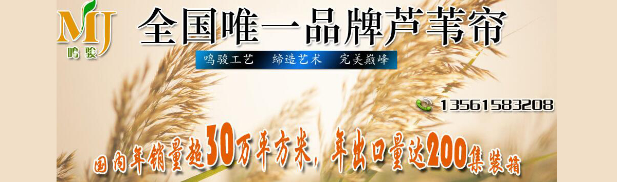 无棣鸣骏农业科技有限责任公司是芦苇帘/芦苇工艺品/农业特产、工艺品/特产副食、酒店用品等产品专业生产加工的公司,拥有完整、科学的质量管理体系。无棣鸣骏农业科技有限责任公司的诚信、实力和产品质量获得业界的认可。欢迎各界朋友莅临参观、指导和业务洽谈。无棣鸣骏工艺品厂是芦苇,竹子编织品的专业生产厂家,主要生产苇帘,芦苇篱笆,芦苇窗帘,竹片篱笆,竹篱笆,芦苇屏风,芦苇栅栏,芦苇护栏等, 地处中国黄河三角区,紧挨京开高速(106国道)与京沪高速,,距北京600公里。交通特便利。 我厂所有编织品均选用优质芦苇,竹条精心编织而成,具有防滑、防潮、吸尘,净化空气等作用,产品广泛用于庭院,花草的遮阳防护,客厅、卧室的装修装饰等多种用途。纯天然的产品,让您尽情享受大自然的亲切,领略大自然的美。 本厂以科技先行,研制开发了全自动铁丝芦苇帘,(竹帘)编织机,竹片篱笆编织机.突破长久以来用手工编织的历史。依靠充足的天然资源,成规模生产芦...