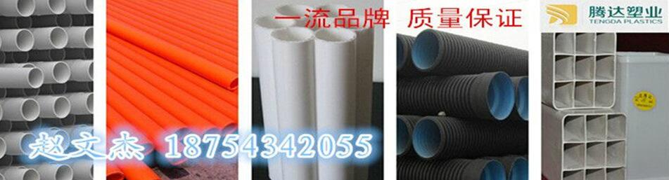 邹平腾达塑料制品有限公司公司简介: 邹平腾达塑料制品有限公司是一家国内较大的专业生产地埋通信管材及排水排污管材的生产型企业。公司北依济青高速公路、南靠胶济铁路,交通便利发达。固定资产5000万元,占地面积十几亩,拥有员工上百人。公司自1993年成立以来,积累了丰富的行业实践经验,不断研制开发新产品,产品远销全国十几个省市和地区。公司奉行“质量第一,客户至上”的宗旨,以优质的服务,良好的信誉,赢得广大客户的信赖。 经营范围 HDPE多孔梅花管、PVC实壁管、PVC双壁波纹管、C-PVC电力管、 HDPE双壁波纹管、碳素管、玻璃钢管、PE给水管、PE—RT地热管及订做各种异型塑 李经理:187-5431-1077 QQ:1394242604 山东省邹平县周邹路中段腾达一路东首