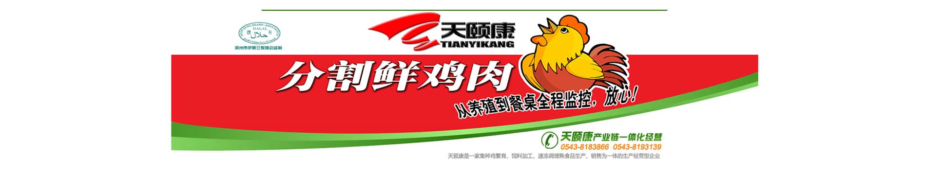 山东前胡天颐康食品有限公司位于无棣县信阳工业园,是黄河三角洲首家肉鸡自养自宰型食品有限公司。公司占地130亩,建筑面积70000平方米,注册资金2000万元,总投资1.7亿元。公司先后被授予“滨州市农业产业化重点龙头企业”、“山东省农业产业化重点龙头企业”、“国家级标准化养殖示范场”、“滨州市文明诚信民营企业”,“滨州市畜牧工作先进单位”,“AAA级信用企业”等荣誉称号。公司肉鸡产品被评为“全国无公害农产品”。公司以带动农民致富为立业之本,首创“无担保赊销养殖模式”,采取“公司+基地+农户”的办法,坚持“鸡苗好、饲料好、管理好”三好标准,为养鸡户实行“五统一”,即统一供应鸡苗、兽药、饲料,统一免费技术服务,统一实行保护价回收成鸡,大力发展肉鸡标准化养殖,全力推行肉鸡生产农业产业链。公司采用荷兰进口的全自动生产流水线,日加工肉鸡12万只,依据得天独厚的优美环境,以打造安全、健康放心的肉鸡产品为己任,打造放心鸡肉产品第一品牌,... [详细介绍] |