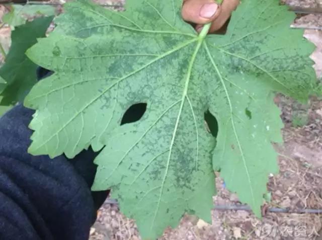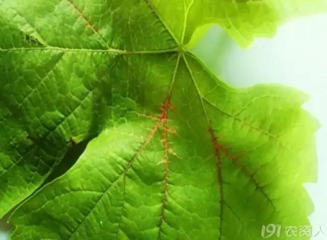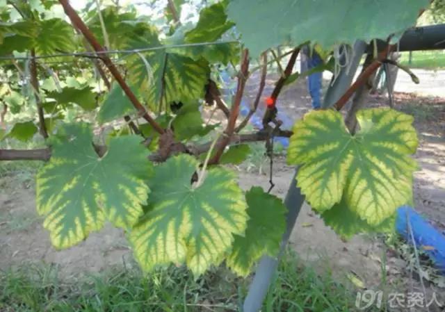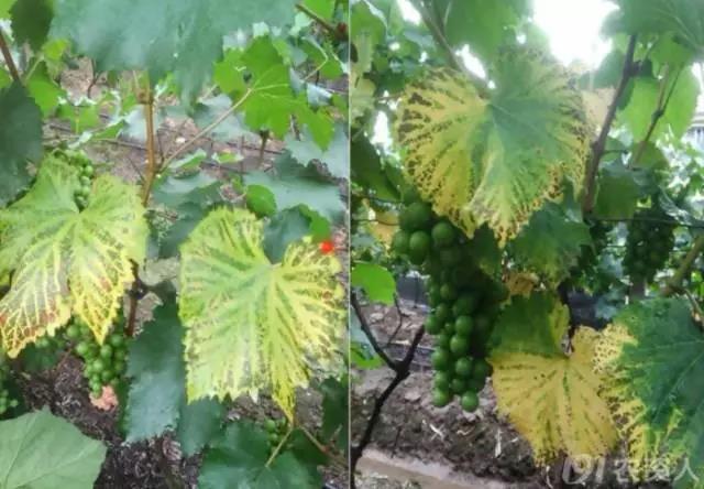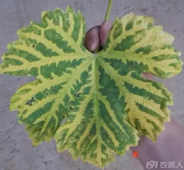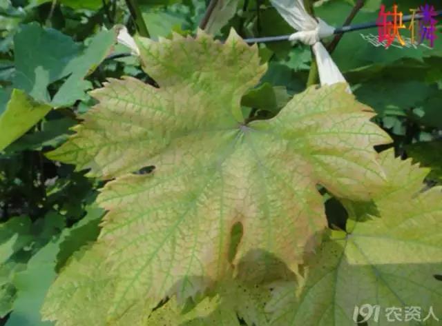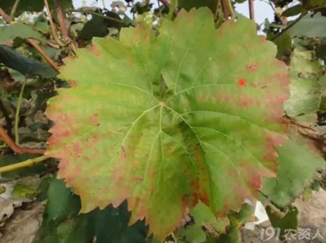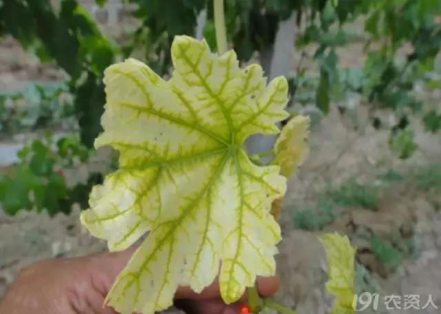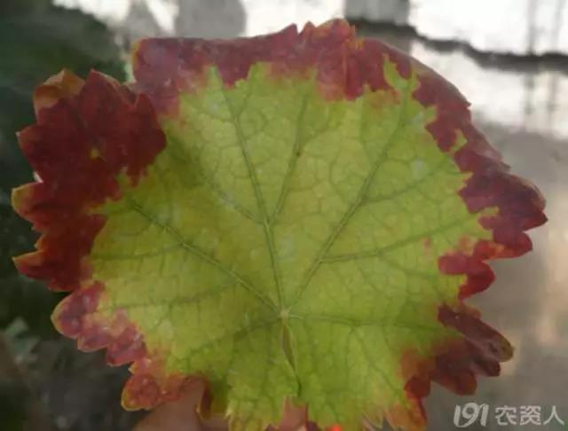 (申老师在河北辛集调研的时候,见到的葡萄缺钙症状,叶脉变褐)