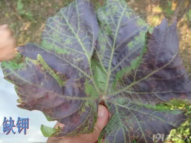 (缺钾,叶肉为绛紫色)