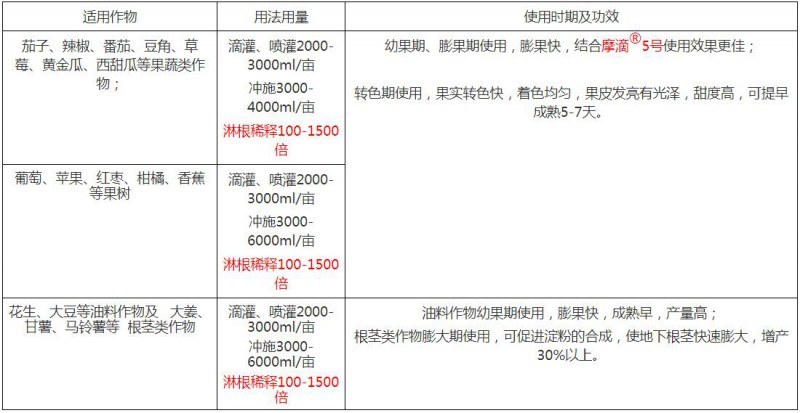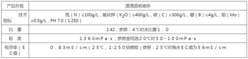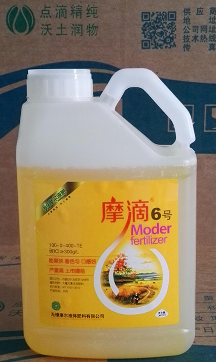 本品为高浓度有机钾制剂,澄清透明液体,氧化钾含量高达400g/L,碳含量300g/L,特别添加高效助剂,吸收利用率极高,能快速满足作物膨大期、着色期及成熟期对钾的需求,使用后可促进果实内花青素及淀粉的合成,加速糖分的积累,果实转色快、着色匀、甜度高;根部施用后,释放出CO2,作物局部微环境的CO2浓度迅速提高,光合作用强度大为增强,增产显著。