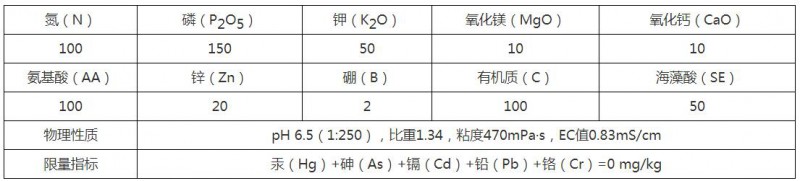 ★本品以海洋生物为基本原料,经有益菌充分酶解,多糖、多肽、氨基酸、腐植酸、海藻酸、亚磷酸等多种生物刺激素与钙镁锌硼等中微量元素完美融合,营养全面,可预防及治疗作物缺素及生理性黄化;