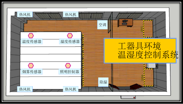 库房温湿度控制系统是由除湿机、加热器、风机、温湿度感应器、独立高温断电装置以及集中控制器等组成。