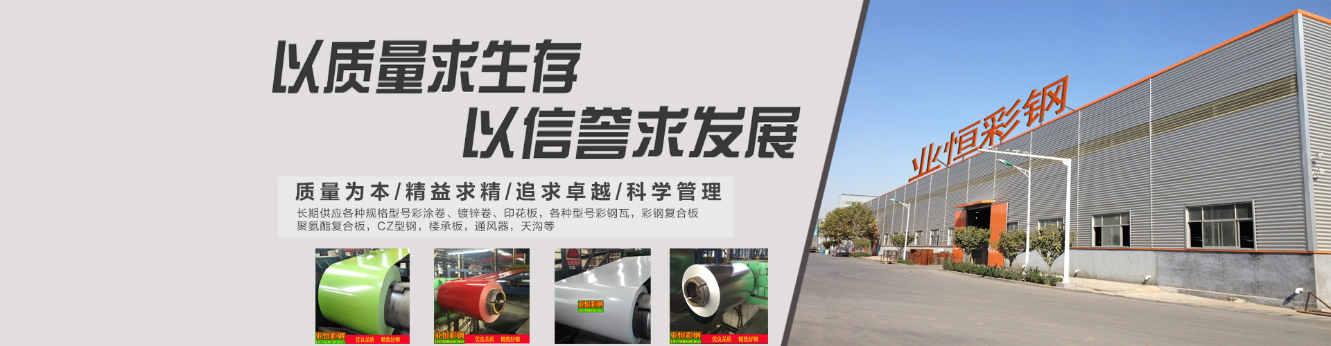 山东博兴业恒彩钢钢铁销售公司是专业生产销售彩涂钢卷,镀锌钢板,铝板材的公司,彩涂板,业内又称彩钢板,彩板。彩色涂层钢板是以冷轧钢板和镀锌钢板为基板,经过表面预处理(脱脂、清洗、化学转化处理),以连续的方法涂上涂料(辊涂法),经过烘烤和冷却而制成的产品。涂层钢板具有轻质、美观和良好的防腐蚀性能,又可直接加工,防止污染提供了一种新型原材料,起到了以钢代木、高效施工、节约能源等良好效果。镀锌钢板,高强度热镀锌卷板、镀锌瓦楞板(波浪瓦)、彩涂基板、开平板,热镀锌板卷是以热轧钢带或冷轧钢带为基板,经过连续热浸镀锌工艺而生产出来的。主要用于建筑、家电、汽车、容器、交通及家业等领域。特别是钢结构建筑、汽车制造、钢板仓制造等行业。它们的特点主要为:耐腐蚀强、表面质量好、经济实用等。铝卷,纯铝卷,保温铝卷,轧花铝卷,各种材质【1060,3003,5052,5083】。铝板;纯铝板【1060】防锈铝板【5052,3003】【6061】铝板,花纹铝板...